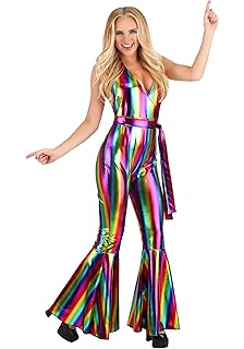 70s Disco Fashion Disco Clothes Outfits For Girls And Guys - The 70S Costume Overall For Women Is A Neckholder Jumpsuit With Flared, Pleated Leg Lengths.