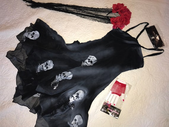 Womens Day Of The Dead Senorita Sugar Skull Costume : Comes With Matching Head Piece.